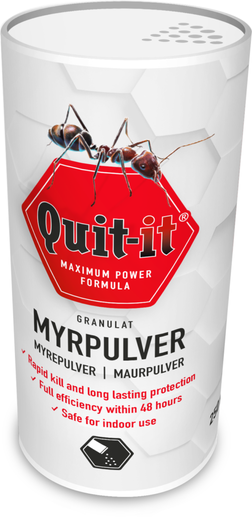 Quit-it Myrpulver innehåller Lambda-Cyhalotrin, som verkar omedelbart vid kontakt eller intag och resulterar i ett snabbt insektsnedslag och död. Lambda-Cyhalotrin dödar genom att fungera som ett högeffektivt gift för insekters centrala nervsystem.